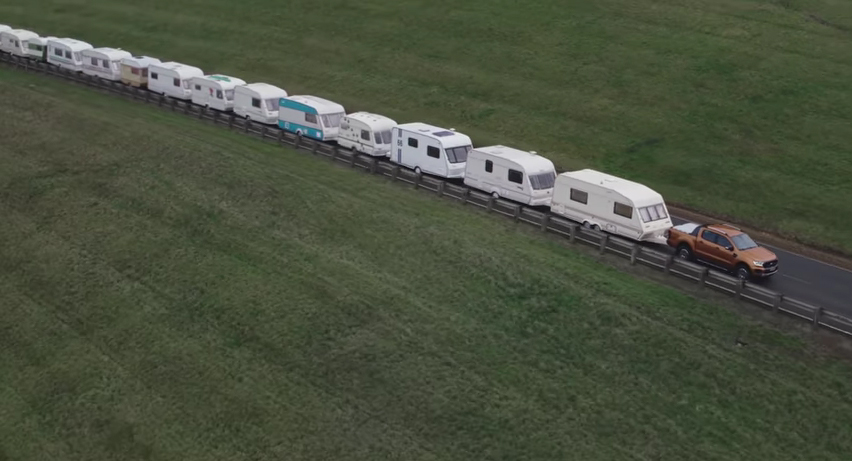 No te preocupes. No es una situación con la que se pueda encontrar en un futuro cercano. La caravana de caravanas ha sido creada por Ford para un nuevo vídeo que demuestra el notable poder de remolque del nuevo Ranger.