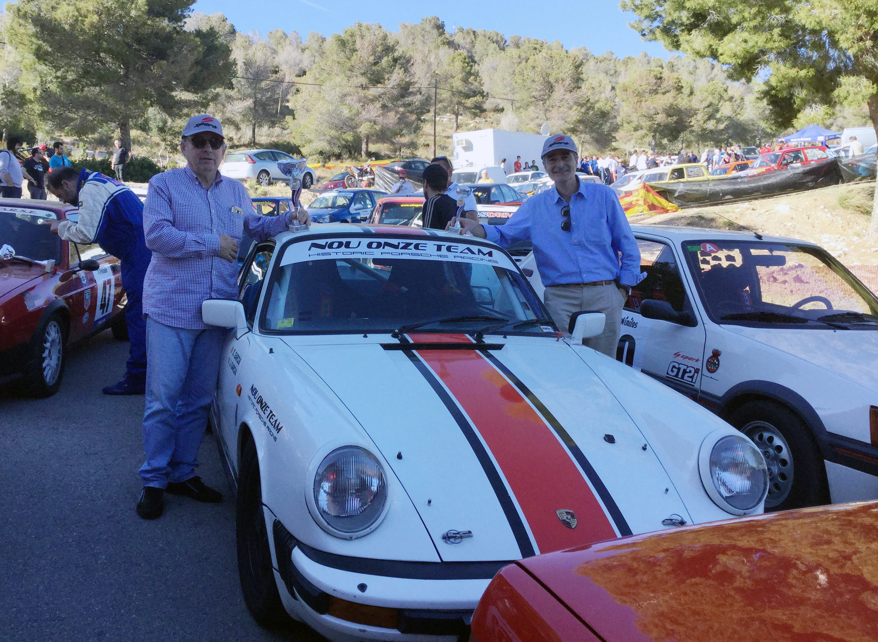 Nuevo triunfo de Ramón Arqués (Peugeot 205 GTI) en montaña, esta vez en la categoría Regularidad Sport de la III Pujada a Alcover, con tercer puesto en este mismo apartado de Josep García (Porsche 911 SC), ambos en la foto. Sant Mateu de Bages, el domingo 14 abril, será la siguiente cita.