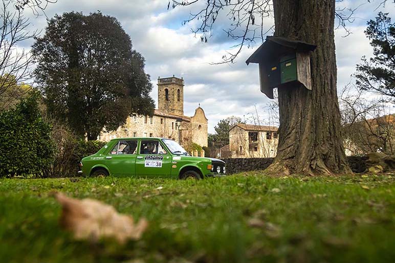 Tras cruzar Sant Hilari Sacalm, el penúltimo del día: Osor, con un macro encantamiento al final. La carretera extremadamente húmeda y resbaladiza lo hacia un poco complicado y el Zastava parecía, en ocasiones, que tuviera dirección asistida. Osor es un tramo especial. Es una sucesión de tramos rápidos, seguidos de otros cortos pero muy delicados, donde pasas unas curvas en ángulo, con unas rocas salientes que dan la impresión de que te golpearás contra ellas, para empalmar con otro rápido, un zigzag por en medio de unas casas… en fin, una sucesión de “coitus interruptus”. Y cuando llegamos al pueblo de Osor, un encantamiento.